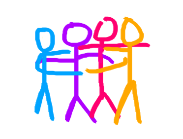 What is this garbage??? Why does it look like a huddle? Are we playing football? At least it's better than going into "flower petal" mode, where people form a circle hugging people on the inside. Flower petal mode causes dramatic imbalance with the amount of hug each person gets.